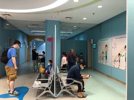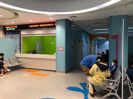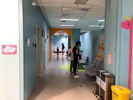 診断室の向こう側に子供専用の救急室、点滴室、霧化室(咳止め薬を機械で吸入)、理療室(インフルエンザ等各種の検査、臍や首等の指定されたツボに漢方薬のパッチを貼り付ける等)等も設置されています。北京においては一流の小児科ではないですが、一般的な病気にはほぼ対応できます。夜間で発熱する場合や病状が重い場合、専門の児童病院に行かないとだめです。