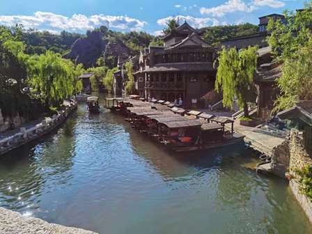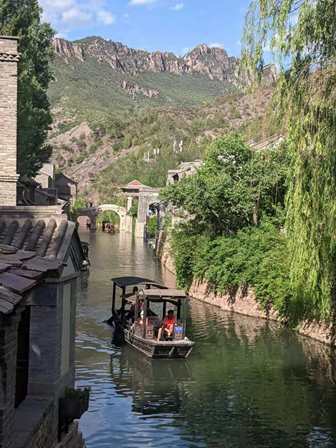 長城の上で一時間ぐらい見学し、歩いて下りて、また、ロープウェーで古北水鎮に戻りました。水鎮では民国風の建築物が多く、南方でよく見かける小さな船も多いです。