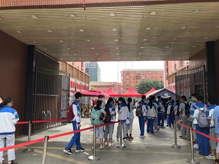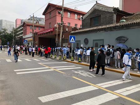 日壇中学は1963年に創設され、北京市朝暘区においては重点学校の一つでもあります。24日の午後14:30からは数学の試験で、20分前までに試験会場に到着しないといけないため、13:40分頃から受験生の入場が始まりました。