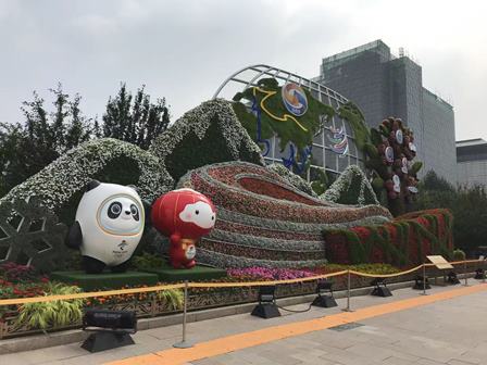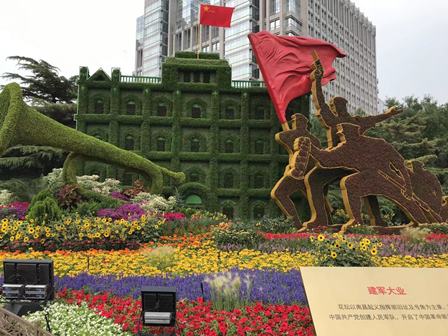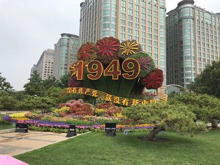 長安街と東単の交差点4つの角においては、「建国」「軍隊建設」「改革開放」「体育」をテーマに、それぞれ立派な花壇が設置されました。ここで記念写真を撮影する観光客も少なくないようです。