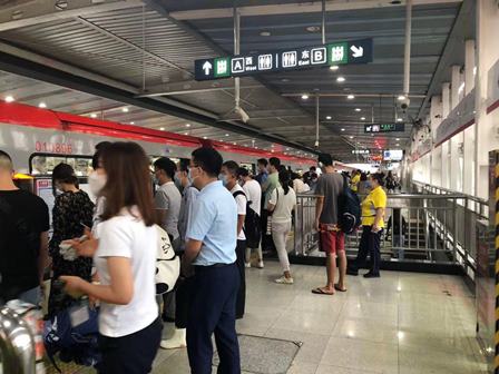 雨の影響で、地下鉄も間引き運転したようで、プラットフォームには乗客がいっぱい溜まっていて、4番目の列車にやっと乗車できましたが、大変混んでいました。