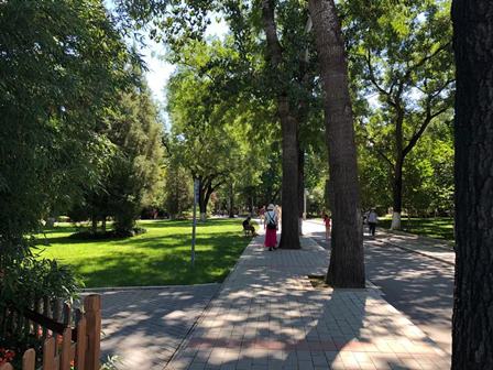 公園に入って、まず目に入ったのは木々の緑です。北京は最近、秋の気配になり、気温は18~29度ぐらいで、昼間は依然暑いですが、朝晩はとても涼しくなってきています。
