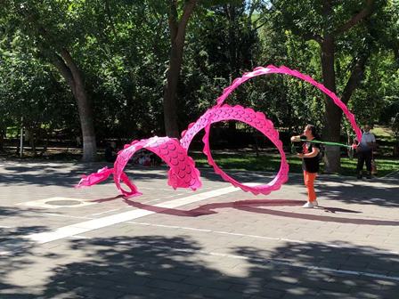 また、公園の中で布でできている「彩龍」を振りながら舞っているお年寄りが多いです。「彩龍」のサイズは様々あり、腕を振って舞うことで全身の関節や筋肉が動かせ、体の健康には非常に良さそうです。