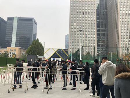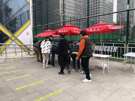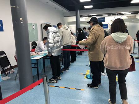 最近、全国各地でコロナ肺炎の感染者が増えつつあり、北京では例えば北京に入るフライトの便数と鉄道の本数を減少する等、一連の対策を取りました。その内、ワクチン第三回目の接種が最も重要な内容で、本人所属の会社や住宅団地等を経由し、接種を薦めています。北京事務所の中国人スタッフも長富宮弁公楼経由で申し込んで接種を受けました。当日、接種する人が非常に多く、接種会場の外で40分ぐらい並びました。下図は接種で並ぶ長い列の様子です。