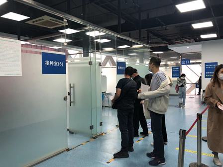 接種会場の内部に入って、担当医師から健康状況などを聞かれ、問題が無ければ医師がサインします。さらに、奥の係員のところで身分証を提示し、前回の接種より180日間経っているか否かを確認しなければなりません。180日間未満の場合、第三回目の接種は駄目だそうです。