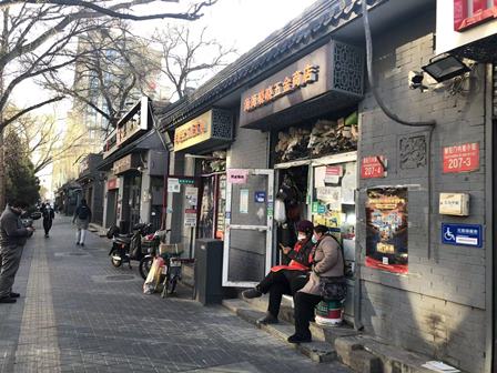 史家胡同は北京市内の東城区に位置し、東側は「朝陽門内南小街」から、西側は「東四南大街」まで、全長は約700メートルです。下図は「朝陽門内南小街」の様子です。小さい飲食店等がたくさんあり、また、北京市郊外においても珍しい「五金商店」(内装工事用の金属製品、パイプ等を販売する小さな雑貨屋)が数軒並んでいて、ビックリしました。