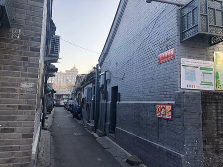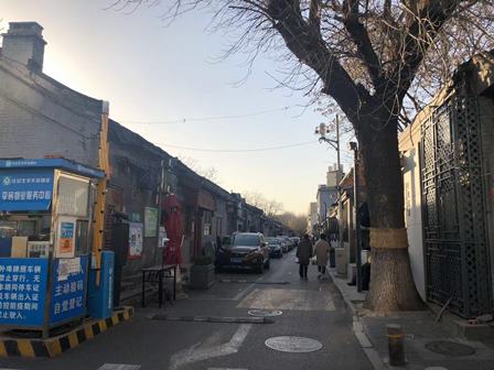 史家胡同は700年以上の歴史があり、元代の劉秉忠がデザインした「元大都図」にこの胡同は既に存在しているそうです。明代から「史家胡同」と名付けて、現在までずっと続いてきました。下図は「朝陽門内南小街」から「史家胡同」に入るところの様子です。