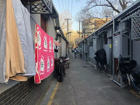 史家胡同と繋がっている「東羅園胡同」及び隣の「乾面胡同」の様子です。この二つの胡同は非常に狭くて、車は通過できないです。自転車に乗っている人は音を出しながら、他の人とぶつからないようにゆっくり走っている感じです。