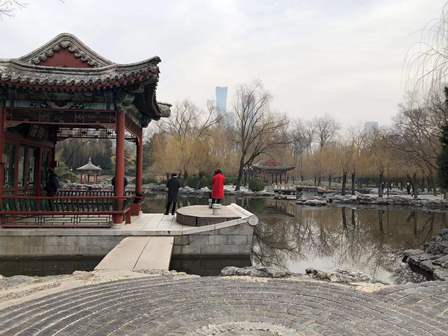 最近、気温は大体、-8~5度ぐらいで、偶には強い風が吹き、公園等の客も一層減りました。下図は日壇公園の一角の様子です。遠くには「中国尊」ビルが見えています。