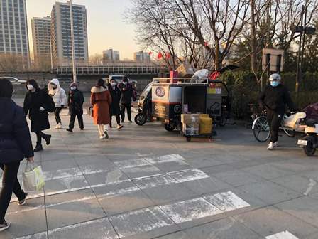 「ダブル11」が終わり、「ダブル12」(12月12日)が来ました。各店の販促活動の範囲や割引等は「ダブル11」より少ないですが、一部お得な商品もあります。小規模な買い物ブームにもなっているそうです。下図は自宅付近のあるオフィスビル前のデリバリーの三輪車の様子です。
