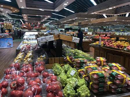 また、12月以来、南方の野菜が大量に出荷が始まったなどのことにより、北京市内の野菜は値段が下がってきました。北京市の新発地卸売市場においては、1日の野菜の出荷量は2万トンに達し、各種の野菜の値段は先月より平均10%以上も下がったそうです。下図は自宅付近のスーパーですが、500グラムでトマトと胡瓜は約6元、キャベツとセロリは約3元、白菜と人参、ジャガイモは約2元となっています。これから、一年中で一番寒い時期に入りますので、多分旧正月迄、また値段が上がっていくことになるでしょう。