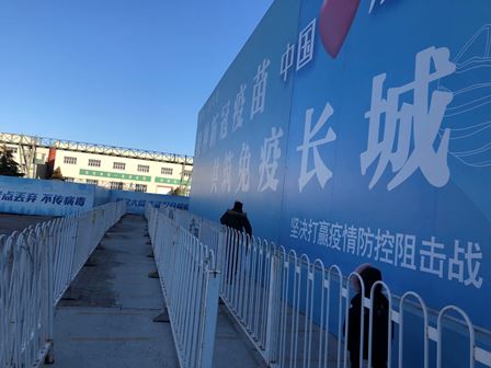 接種拠点の周辺では「コロナワクチンを接種し、免疫の長城を構築する」等のスローガンを大きく掲げています。