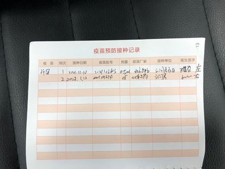 子供の場合、北京市共通の「北京市免疫予防接種証」があり、その中にお医者さんが情報を記入し、サインします。これを学校に提示すればOKです。