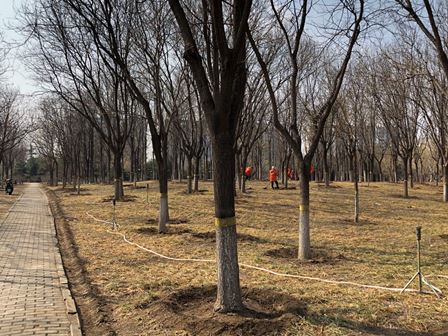 雪が降った翌日から気温が10度以上まで上昇し、週末で雪がほぼ解けました。雪が解けてから、各公園で花見をする市民がまた多くなりました。下図は週末の時間を利用し、オリンピック森林公園で桃の花を観賞している人々の様子です。今の時期では桃の花が一番多いようです。柳以外、普通の樹木は未だ芽生えていないです。
