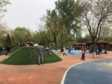 我が家にはいたずらっ子がいますので、子供専用の運動施設のところまで移動しました。砂遊びや下図のような登り台のところが子供の間で一番人気があるようです。