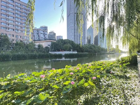 今週、北京は最高気温がずっと36度前後で、猛暑が続いています。公園や市内の川では蓮の花が満開を迎えてきました。下図は北京市内の亮馬河川邊で撮影した写真です。亮馬河は600年以上の歴史があり、全長は9.3キロ、西は東直門外小街から、北東に酒仙橋を流れ、垻河に入り、朝陽区運河文化の重要な構成部分でもあります。