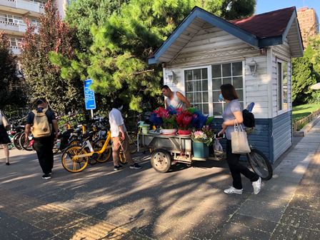 地下鉄の出口やオフィスビルの周辺で蓮の花や葉っぱ、蓮の実を販売する三輪車もよく見かけるようになりました。下図は地下鉄建国門駅で撮影した写真で、今年の蓮の花は綺麗にラッピングされて「アップグレード」しています。一束30元で、バラなどに比べるとはるかに安いので、とても人気が高いようです。蓮の実は一パック20元で、生で食べられます。