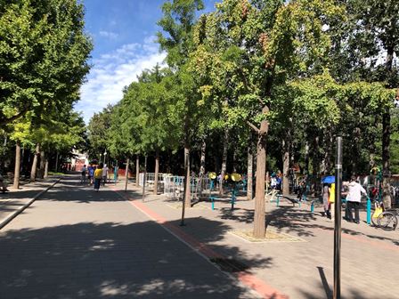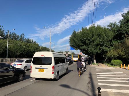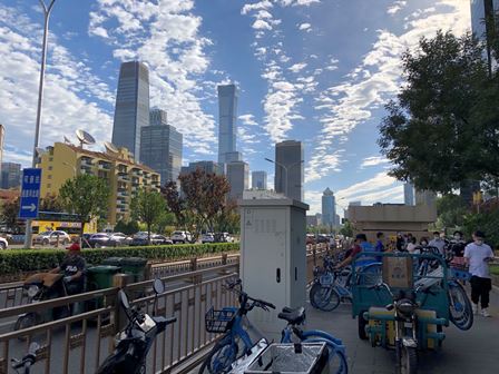 下図は朝、出勤時に国貿周辺及び自宅付近で撮影した写真ですが、青い空と白い雲で非常に綺麗です。また、出勤のラッシュアワーなので、国貿駅周辺のシェアー自転車が足りなくなり、担当者が電動三輪車でほかのところから自転車を搬送してきました。統計データによると、北京市中心部には現在約80万台のシェア自転車があり、2022年上半期、シェア自転車の累計利用者数はのべ4.18億人、一日当たり平均走行量はのべ231.17万人で、前年同期比14.52%増加したそうです。