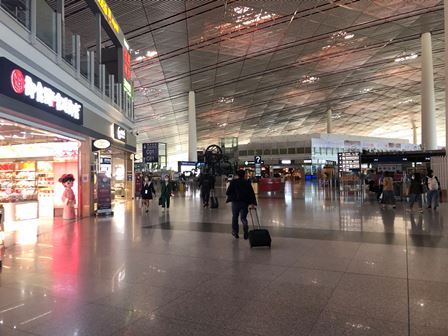 最近、中国各地でコロナの感染状況がまたひどくなっていて、この商談会の主催側よりイベント開催の24時間前に厦門に到着しなければならないと要請されました。やむを得ず予定を1日前倒しして、北京首都空港から出発するようにしました。下図は北京首都空港第三ターミナルの様子です。以前に比べ、旅客がだいぶ減っていて、少し寂しく感じました。
