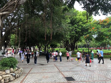 厦門はかなり南なので、秋になっても蒸し暑くて、最近の気温はほぼ26~34度です。北京はもう秋の気配ですが、こちらは依然として夏のようです。下図は厦門の町で撮影した写真で、樹木が生い茂り、北方では見られない植物も多いようです。