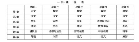 小学1年生の場合、毎日国語、数学、英語以外、体育や美術、書法、労働(掃除など)、卓上ゲーム、道徳教育等の授業があります。下図は授業スケジュールの実例です。