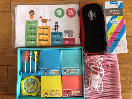 学校の要求に応じて、カバンの中には、毎日テキスト以外に、マスクやティッシュペーパー、テーブルクロス、跳び縄、水筒、数学道具、スプーン等も入れなければなりません。