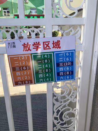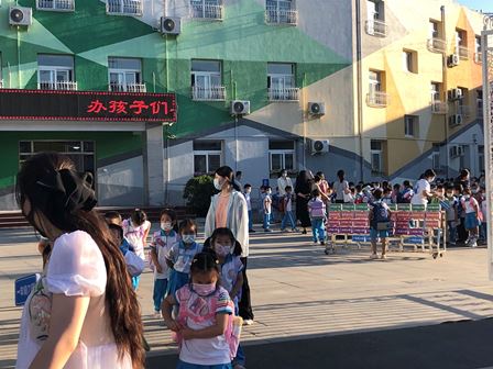 午後の下校時間は4:20と5:20、二つの選択肢があります。各家庭は自分の都合に合わせて、子供の出迎え時間を調整できます。北京では、現在10歳までの子供に関しては、保護者の送迎が義務付けになっています。毎日、指定された場所で各クラスの担当先生が子供たちを保護者にそれぞれ手渡しするようにしています。下図は下校時の様子と指定場所配置図の様子です。