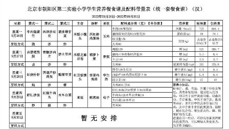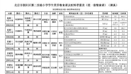 北京市内の小学校は、殆ど昼食のみを提供しています。漢民族料理とイスラム料理、2種類があります。政府の補助金がありますので、値段は安くて、1食18元となっています。下図は最近のメニューです。毎週の週末で翌週のメニューが発表され、保護者は携帯のAPPを通じて確認できます。