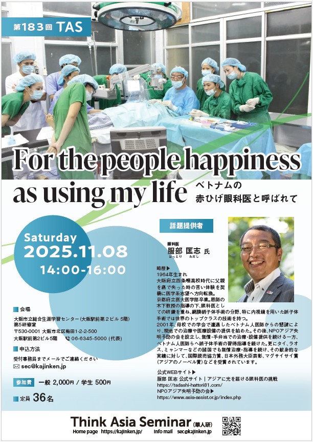 第183回TAS(Think Asia Seminar華人研)セミナーのご案内